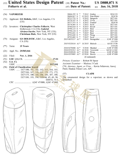 GS Holistic还有许多外观专利,销售电子烟的同行也需要注意一下。