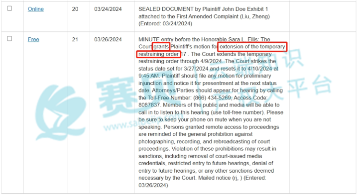 品牌原告:匿名 起诉类型:专利 起诉日期:2024-2-29 代理律所:Aptum Law 案件最新进度 根据本案在2024年3月12日的会议记录,法庭已批准原告提出的TRO(Temporary Restraining Order,临时限制令)动议。3月24日,原告又提出延长TRO动议,26日被批准。有销售相关产品的卖家朋友需要尽快下架产品,以做好应对准备。