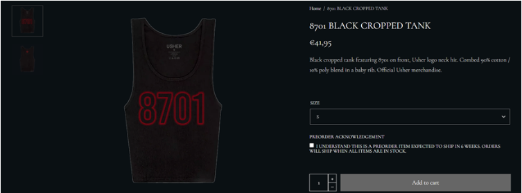 (图片来源:https://shop.usherworld.com/products/8701-black-cropped-tank;引用日期2024-9-6)