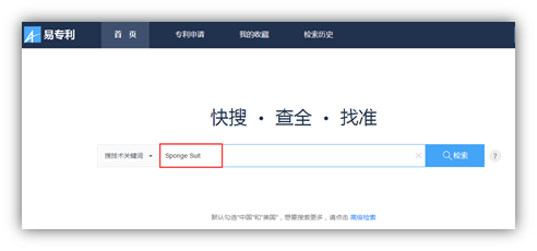 浪荡放棒,帅的一笔。本着科学严谨、求实创新的的精神,小编默默打开自己来旗下专利检索工具——易专利,输入技术关键词:Sponge Suit