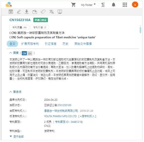 涉案专利:藏药独一味软胶囊制剂及其制备方法