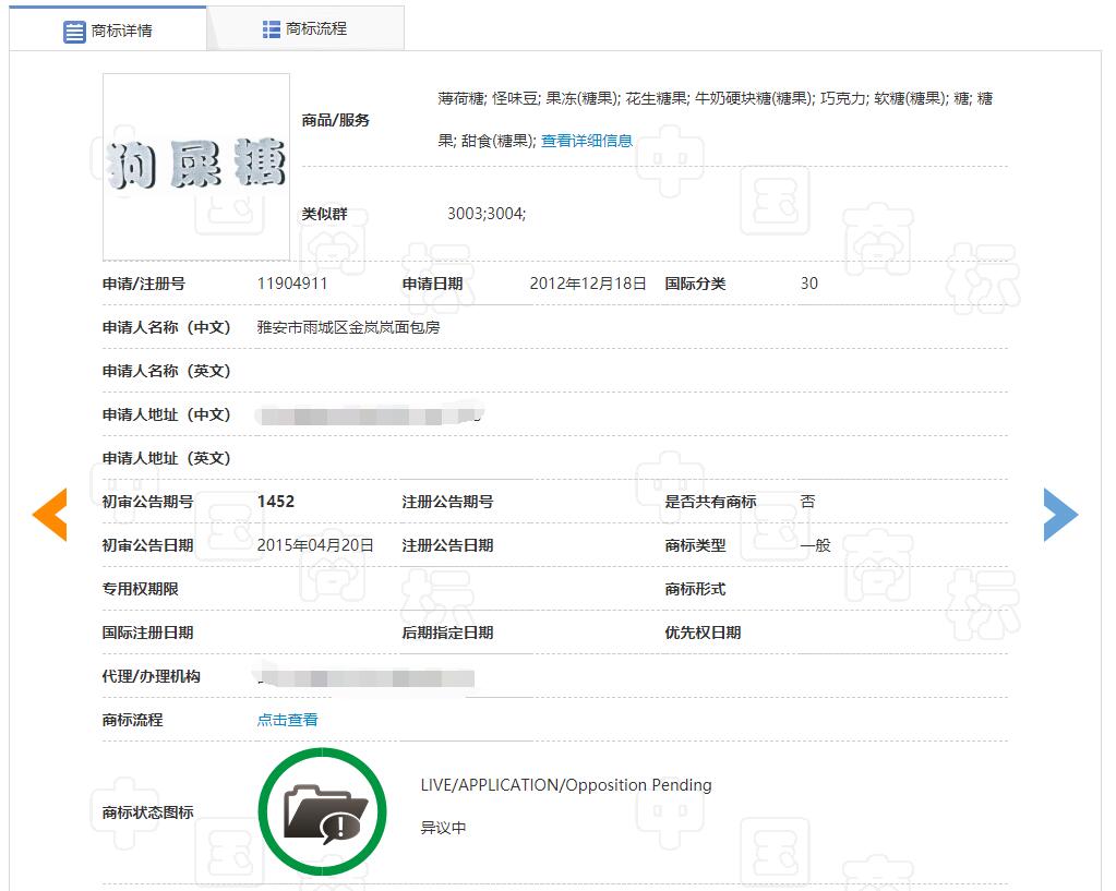 2015年4月“狗屎糖”商标复审成功后进入公告期,但是在三个月公告期内,3位与李岚素不相识的人对该商标提出了异议,并出具了相关证明和证据,经审理商标局认定异议成立,商标不予注册。