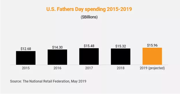 20世纪初,美国率先庆祝父亲节,现在父亲节已在世界各地广为流传,但节日日期会因地域不同而存在差异,大多数国家的父亲节在每年6月的第三个星期日。美国消费者越来越重视父亲节,截至去年,预计父亲节支出总额已经达到155亿。可见父亲节还是一个非常有营销价值的节日。