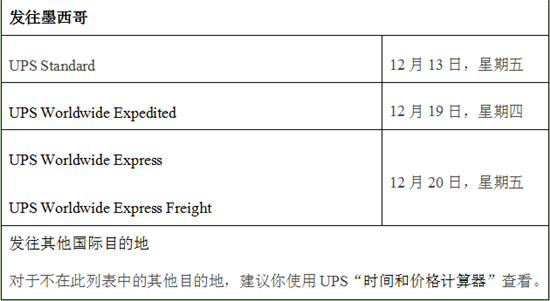 以下是使用(包括USPS、FedEx和UPS)从美国境内寄出的包裹的运输截止时间清单。