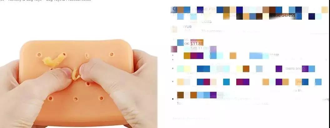 解压玩具千千万,但是这么恶心的解压玩具竟然深受喜爱。这款解压玩具是模仿挤痘痘的过程过程做的,用力按压就能把“毛孔”里的“痘痘”挤出来,而且挤出来还带着不明膏体,真的是逼真又恶心。很多卖家表示看了有点可怕,小编表示接受无能。但是这并不妨碍消费者喜欢。