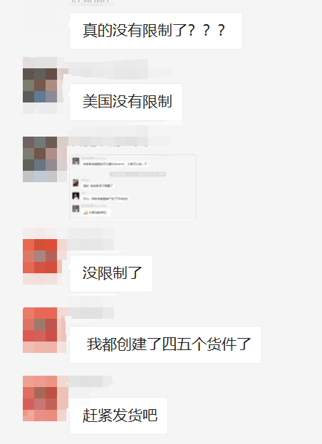 今日一早,就有卖家在群里发布喜讯:亚马逊美国站FBA解除补货限制了!