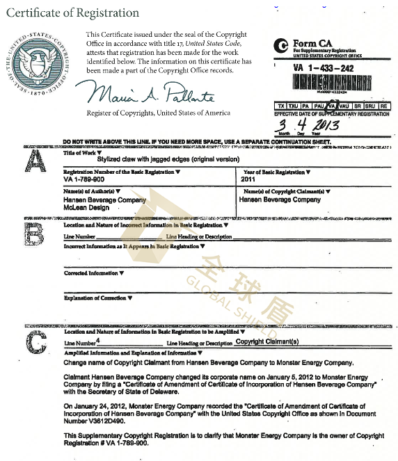 该品牌的魔爪形商标的注册大类包括9(科学仪器)、16(办公用品)、18(皮革皮具)、22(绳网袋篷)、25(服装鞋帽)、32(啤酒饮料)等。以下列出部分涉案商标供参考。