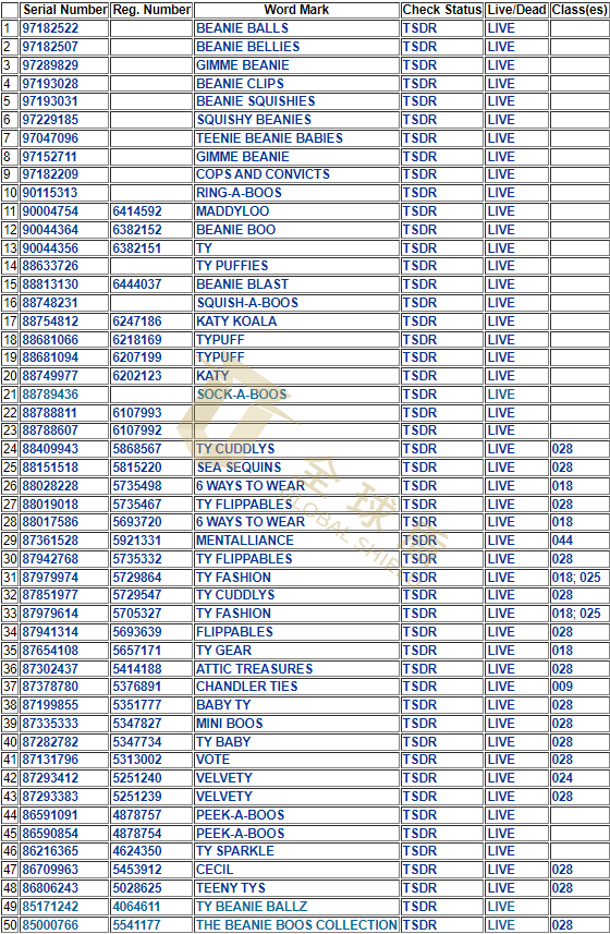 但实际上该公司注册的商标并不止这四个,其他商标卖家也不要使用,尤其是“TY”以及“BEANIE”。