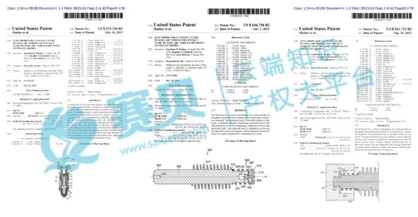 Workman Nydegger律所代理Hypertherm电极于2024年6月21日在伊利诺斯州北区发起诉讼案件24-cv-5198,涉及专利侵权,专利号:US8115136B2,US8541712B2,US8546718B2。赛贝建议亚马逊、沃尔玛、阿里国际、eBay、Temu等平台的卖家朋友速速自查店铺链接,及时下架,以减少损失。