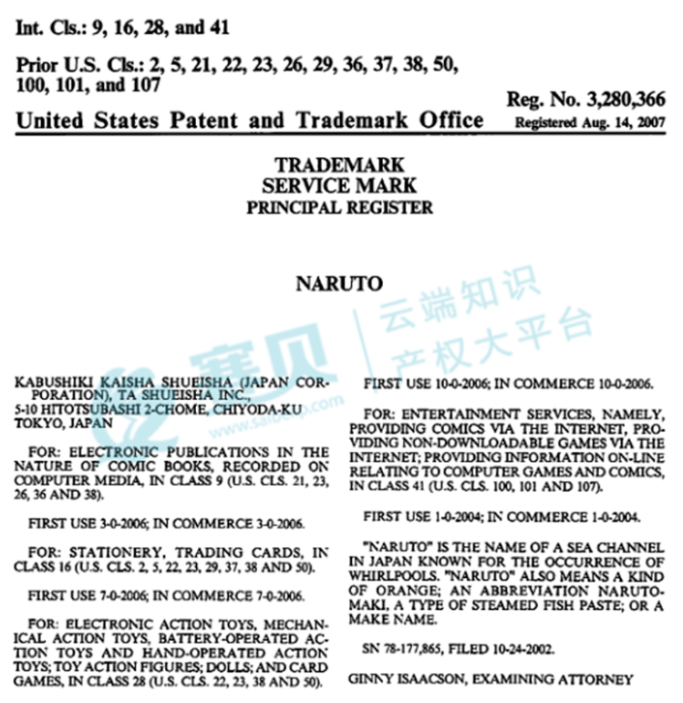 TV Tokyo Corporation成立于1964年,是一家总部位于日本东京的电视台,主要播出各种类型的节目,包括动画片、综艺节目、新闻报道、体育赛事等。该电视台在动画领域拥有较高的知名度,播出了众多知名的动画作品,如《火影忍者》、《数码宝贝》、《进击的巨人》等。其中《火影忍者》是日本漫画家岸本斉史所创作的一部漫画作品,它的故事背景设定在一个虚构的忍者世界,主要讲述了鸣人及其朋友们在成长过程中所面临的挑战、友情、爱情和成长。故事情节扣人心弦,充满了冒险、战斗和情感的元素,因此深受广大观众的喜爱。除了漫画之外,《火影忍者》还被改编成了动画、电影、游戏等多种形式,受到了全球范围内的热烈欢迎。 (图片来源:https://naruto-official.com/en;引用日期2024-08-29) 近两年案件汇总 本案涉及以下三个美国注册商标,商标注册类别有9(科学仪器)、16(办公用品)、25(服装鞋帽)、28(健身器材)和41(教育娱乐),销售这些类型产品的商家不要使用到TV Tokyo Corporation的注册商标,特别是产品的本身、外包装、标题以及描述详情里,否则会有侵权风险。 (图片来源:图片来源:https://www.amazon.com/;引用日期2024-08-29)
