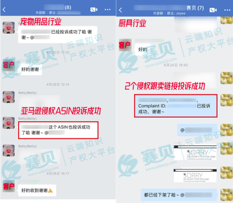 如果委托赛贝进行侵权投诉,且侵权链接未下架,侵权投诉不成功,赛贝是不收取任何费用的。以下是近期赛贝为权利人进行侵权举报的部分成功案例,涉及十几个品类,数十条侵权链接已被成功下架。(以下是部分成功案例截图)