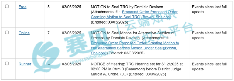 Brown IP Consulting, PLLC律所代理Dominic Davison版权画于2025年3月3日在德克萨斯州东区发起诉讼案件25-cv-97,涉及版权侵权。赛贝建议亚马逊、沃尔玛、阿里国际、eBay、Temu等平台的卖家朋友速速自查店铺链接,及时下架,以减少损失。