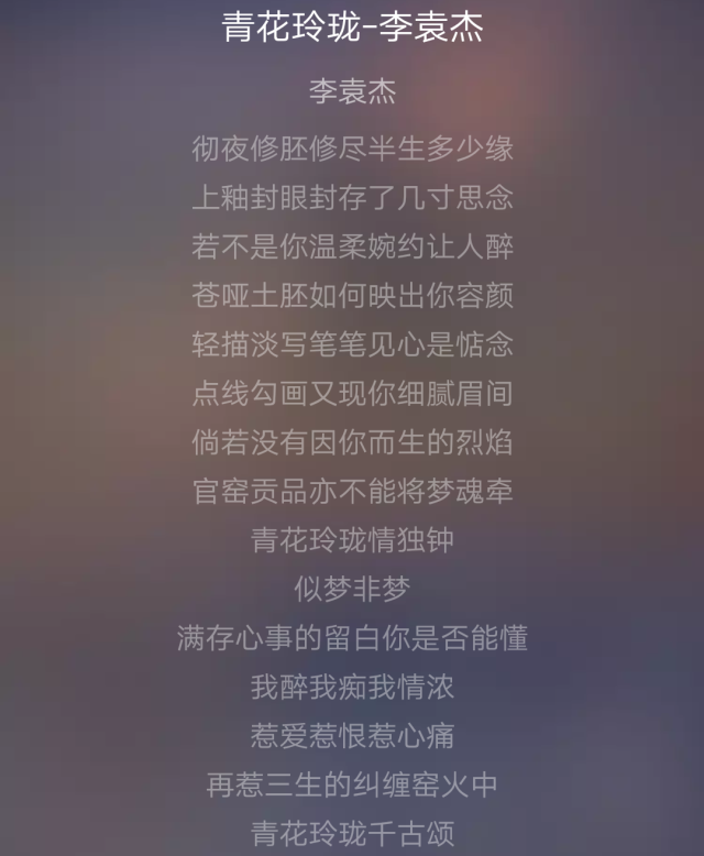 赛贝小编怀着好奇之心打开了李袁杰的《青花玲珑》,还没有听李袁杰唱光是看歌词就有一种熟悉的感觉。很多词一个词一个词看觉得陌生,但是有一些关键词都是大家耳熟能详的,比如“轻描淡写”、“勾勒”、“窑火”等等。打开了周杰伦的青花瓷,这种感觉更熟悉了,《离人愁》欠周杰伦的道歉还没有说,结果又出现这种情况。