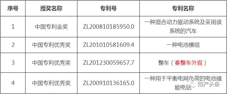 截止目前为止,小编了解到比亚迪(以下简称:BYD)在2015年10月份第十七届中国专利奖评审结果公布,BYD股份有限公司的“混合动力专利技术”获得中国专利金奖,这是汽车厂商首次在新能源领域获此殊荣。除此之外,BYD还有三项专利获得优秀奖:秦外观设计专利、电动汽车电池专利技术、储能系统专利技术。